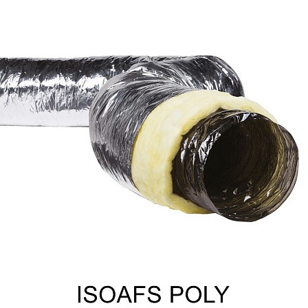 ISOAFS-POLY представляют собой теплоизолированные полиэстровые гибкие воздуховоды, выполненные из нескольких слоев полиэстера со спиральным каркасом из стальной проволоки, покрытые изоляцией из стекловолокна и металлизированного паронепроницаемого слоя.