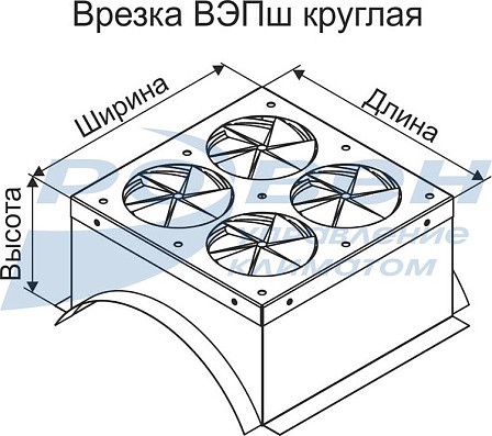 П- ВЭПш - панель воздухораспределительная с односторонней подачей воздуха для напольной установки в рабочей зоне и потолочной установки с вертикальным подводом воздуха через воздуховод прямоугольного сечения.