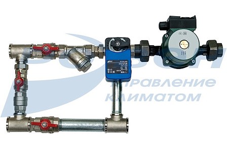 Посредством байпасной линии происходит разгрузка трехходового клапана по давлению, а также обеспечивается постоянство расхода в тепловой сети.