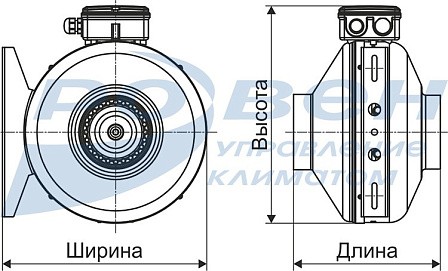 Габаритные и присоединительные размеры вентиляторов канальных серии VC-355 (мм)